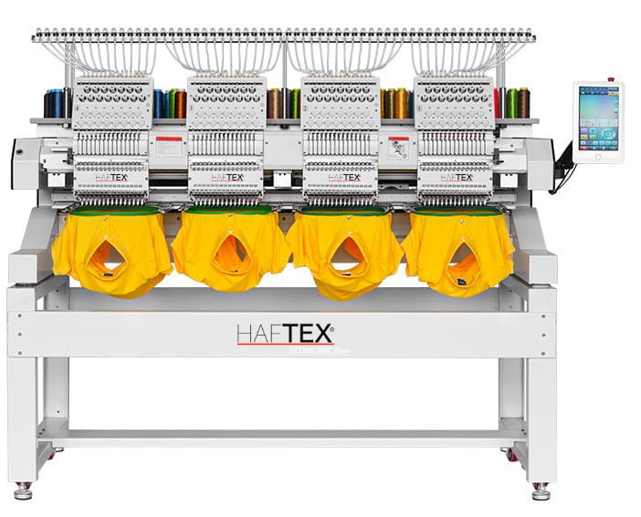 Hafciarka Haftex 1504 Economic to seria maszyn z klasycznymi rozwiązaniami technologicznymi, maszyna bazuje na konstrukcji z serii PRO. Budżetowe rozwiązania pozwoliły przygotować maszynę w najlepszej cenie na rynku. Maszyna dobrze wyposażona w tamborki i uchwyty do czapek i ramę do metrażu. Automatyczna zmiana kolorów , automatyczne obcinanie nici , duże pole pracy dobrze sprawdza się w każdej małej firmie jak i uzupełnienie bieżącego parku maszynowego.