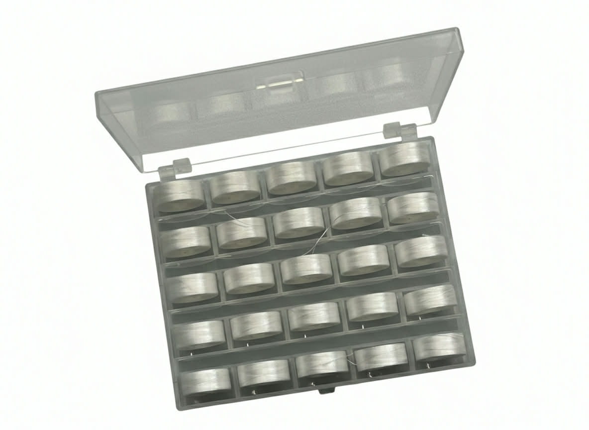 Nici spodnie got. szpulki białe do haftu 25 sztuk w plastikowym zamykanym pudełku
