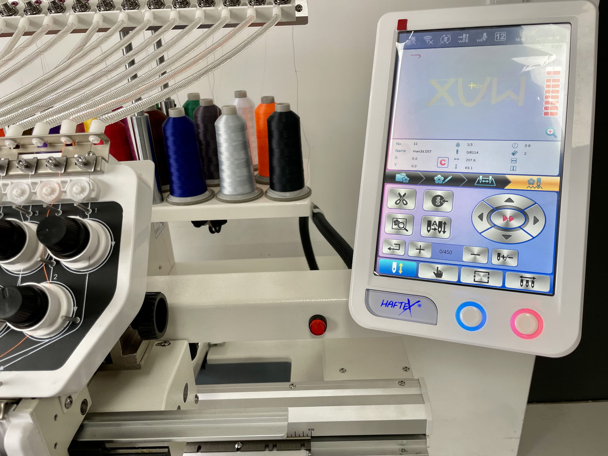 Dlaczego warto wybrać Haftex i model 1502 MAX, gdyż to profesjonalna hafciarka komputerowa. Nowa konstrukcja maszyny to przede wszystkim haft w 15 różnych kolorach, z prędkością do 1200 wkłuć na minutę. Model 1502 MAX wyposażony jest w najnowszą bezstopniową zmianę kolorów. WIFI ze zdalną kontrolą oraz większe pole pracy.